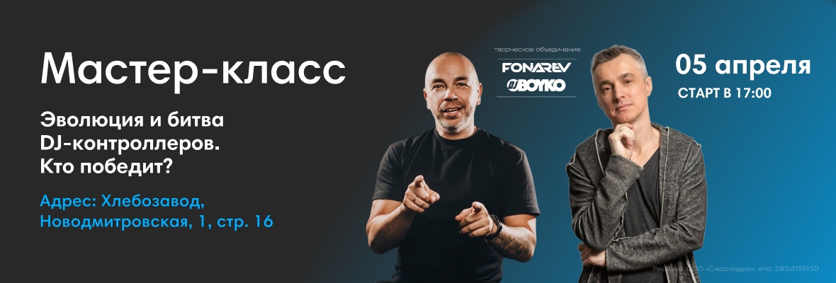 Творческое объединение FONAREV & DJ BOYKO приглашает вас на лекцию-мастеркласс «Эволюция и битва DJ-контроллеров. Кто победит?»